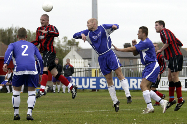 But just minutes later, the home side edged in front as Prestwich failed to deal with a corner as the ball was headed back across leaving an unmarked forward a simple header that beat ‘keeper Scott Parker.