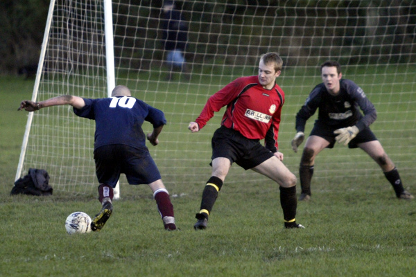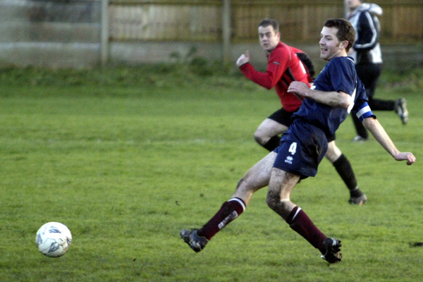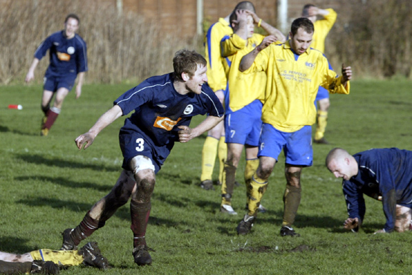 But Prestwich hit straight back, first as Ward found an upright and then through a penalty of their own as Woodcock burst through but was hacked down by the ‘keeper just inside the box.