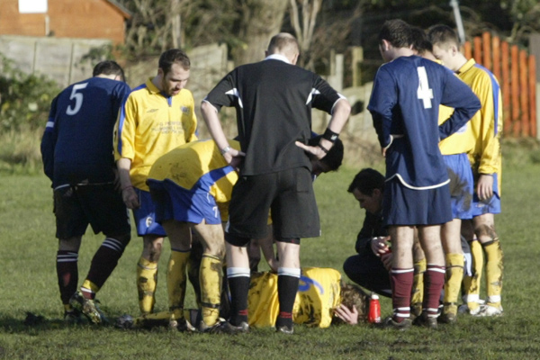 Losing a tooth and suffering from concussion, the Prestwich striker spent the next couple of hours in A&E while the doctors checked there was no further serious damage.
