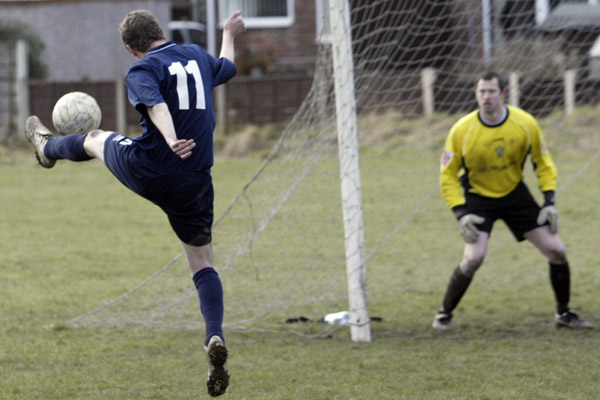 But Old Manc’s hit back and restored parity as a forward took advantage of indecision in the Prestwich defence to nip in and score, despite ‘keeper Mike Hudson’s best efforts.