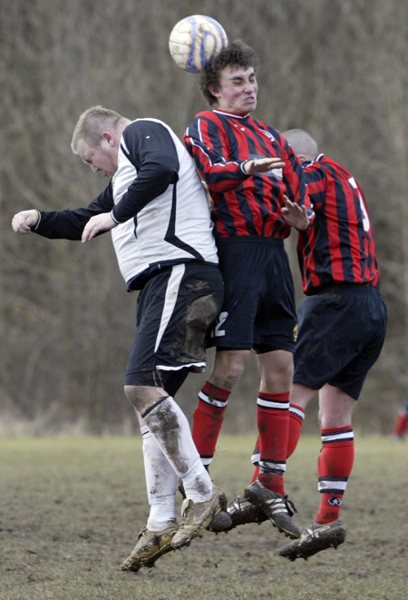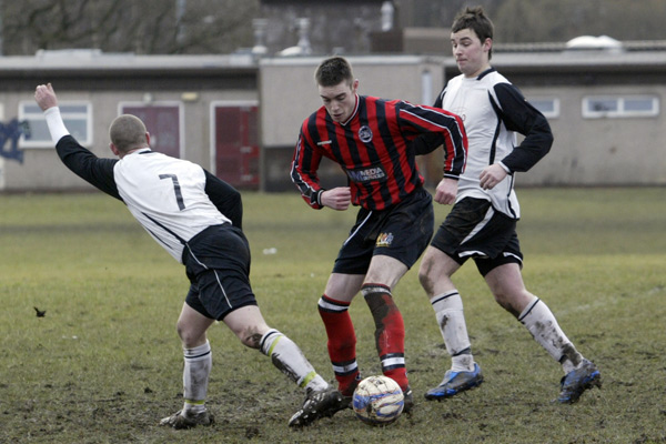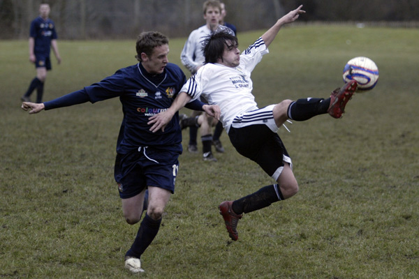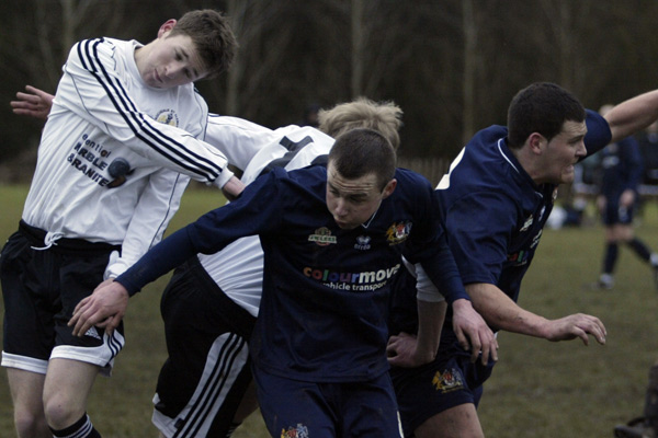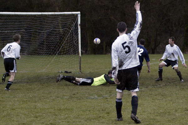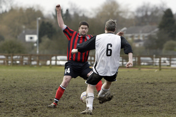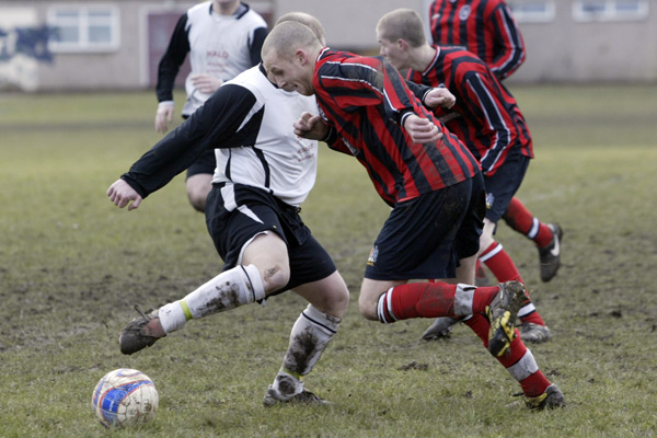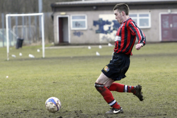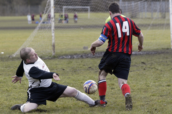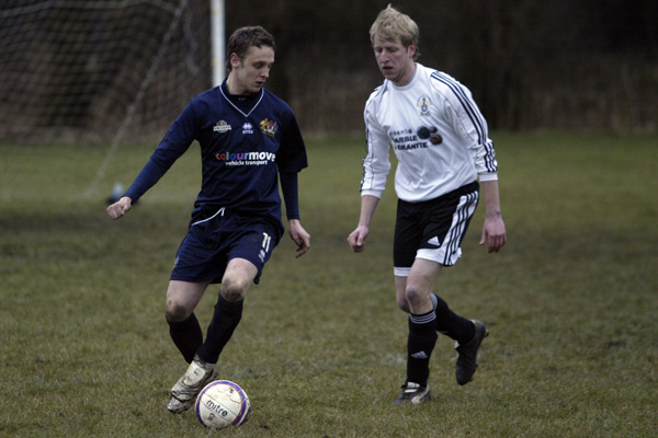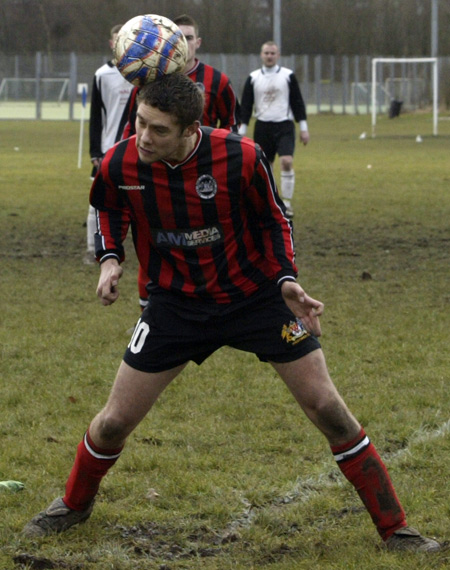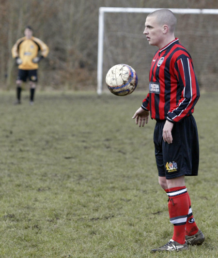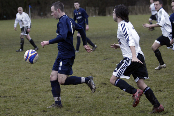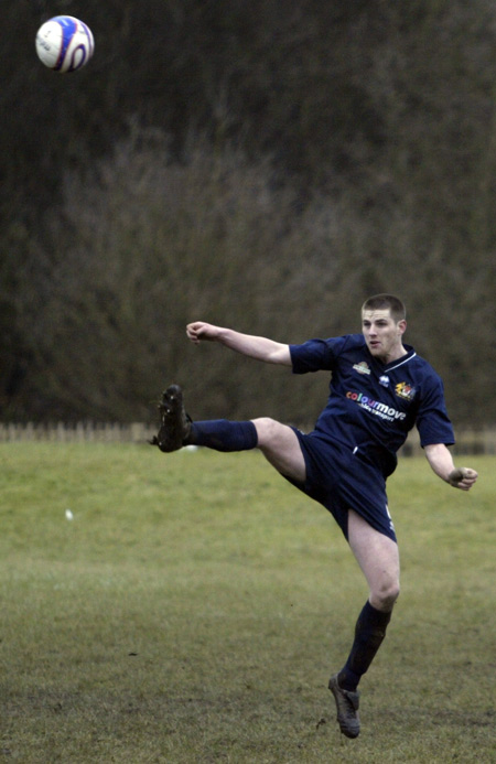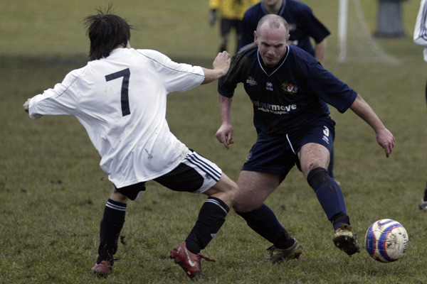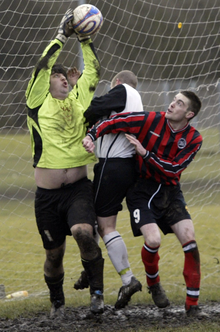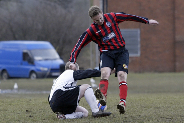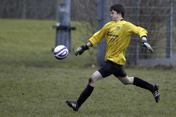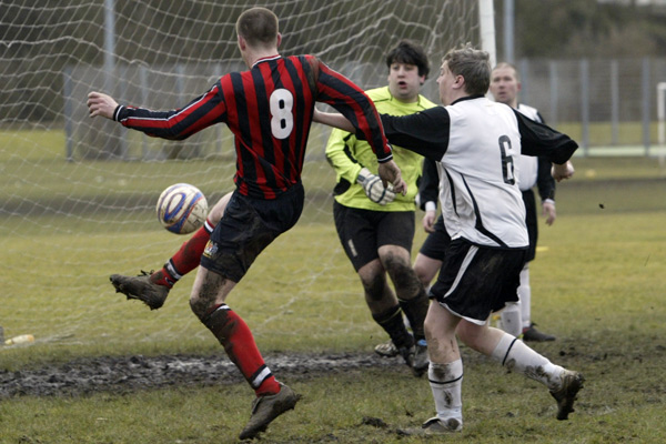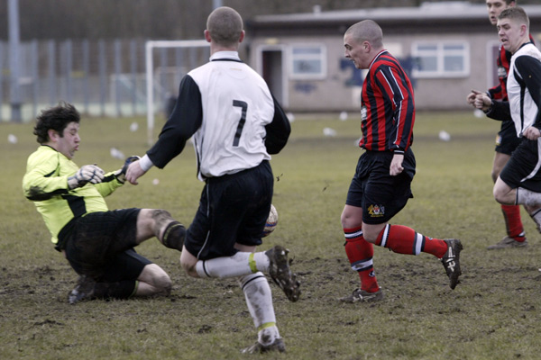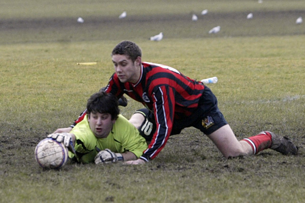 Prestwich ‘keeper Mike Hudson was only called in to action once during the entire 90 minutes, scrambling across his line to punch a ball to safety, such was the dominance of the defences.