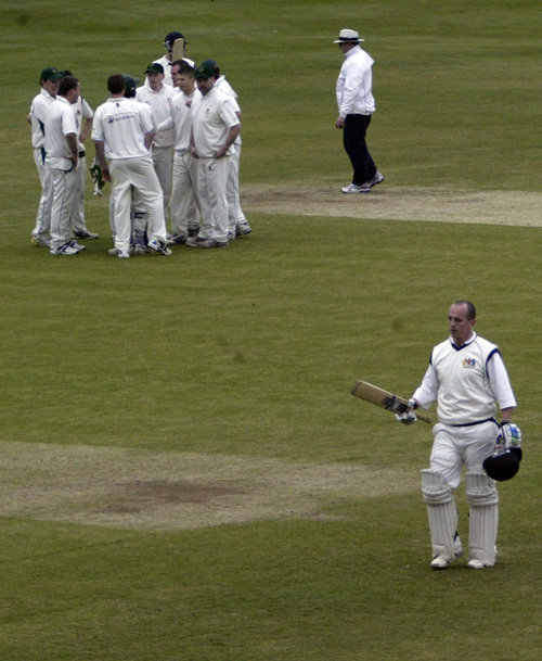 However, his replacement Holden took up the cudgels and took 3 for 11 to restrict the visitors to 133.