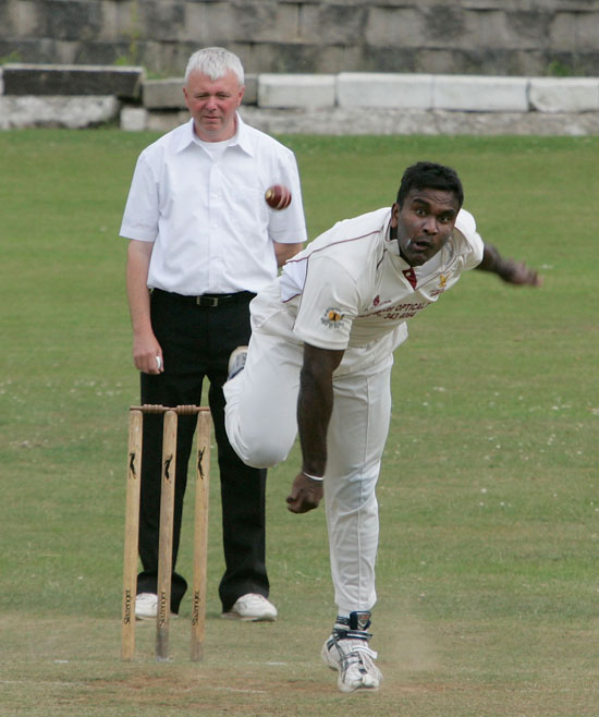 Professional Amila Weththasinghe was still at the crease though and he reached his half century from 68 balls but, with wickets continuing to fall at the other end, he tried to force the issue and was well caught by Lewis Johnston on the boundary for 65.