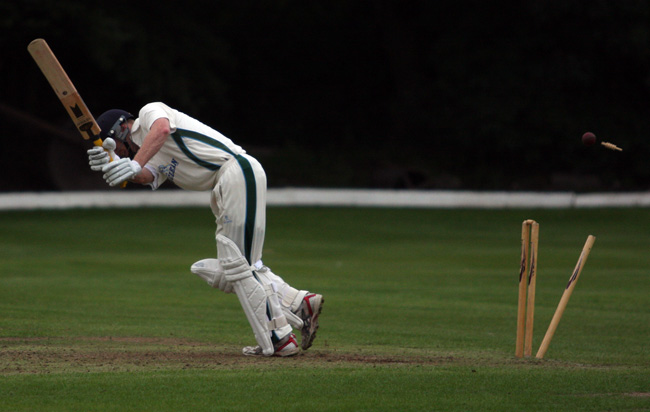 Flowery seemingly held the upper hand until intermittently losing a wicket, putting Prestwich back in with a good shout. Armstrong tempted Hawley to slice the ball to Thomas at point for 12 and then Carter picked up his second wicket of Dickin for 15.