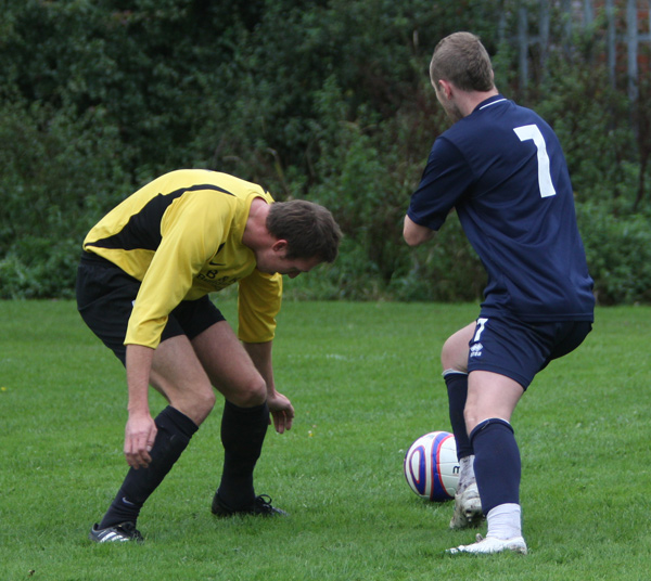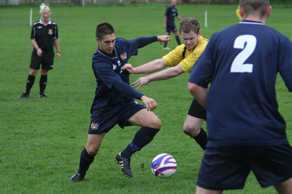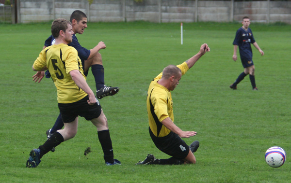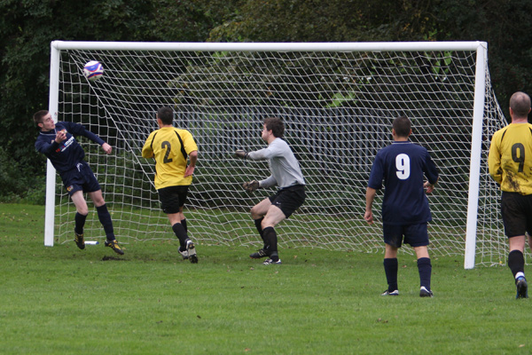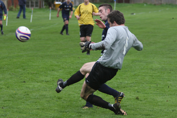 When a forward broke through the back line, ‘keeper Mike Hudson rushed out to smother but clipped the forward to concede a penalty which was duly converted.