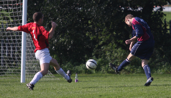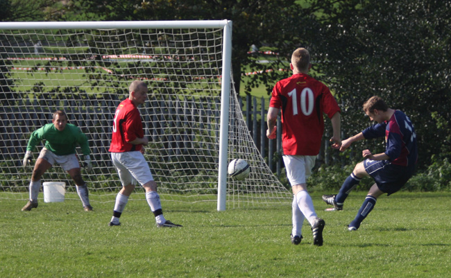On the stroke of half-time the home side doubled their advantage when Jordan Clegg picked up the ball near the left hand side. With nothing much on he decided to let fly from 30 yards and the ball beat the ‘keeper high in to the top corner.