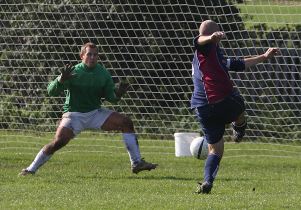 With the Sunday team’s striker crisis this season, manager Pete Lorenzini opted to bring in Paul O’Donnell from the Saturday team to partner Anthony Roberts in the home sides attack.