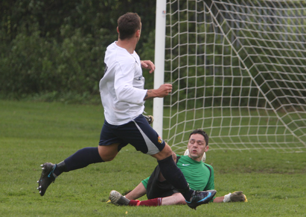 With Clegg and Hoggard running their back four ragged, the fourth goal came just 10 minutes later when Comiskey robbed their player of the ball before ‘Feeding the Hog’ who raced away and placed his low shot to the side of the on rushing ‘keeper.