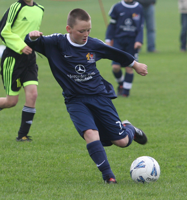 Prestwich started off well with some good football being played and the opening goal came after just 11 minutes when a good ball from Kieran Comiskey found Kieran Doherty at the back post who slotted it past the ‘keeper.
