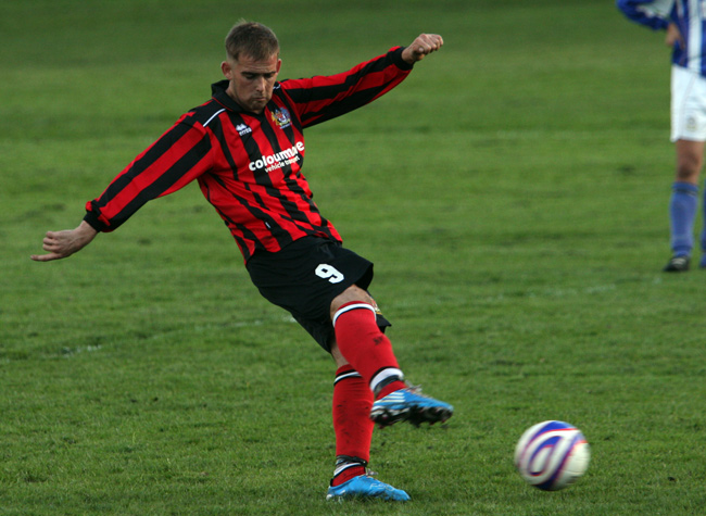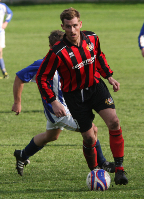 After just five minutes, Darren Buckley collected the ball on the edge of the area and unleashed a superb volley in to the corner leaving the Woolpack ‘keeper rooted to the spot. 1-0 to Prestwich but ‘Bucko’ was just getting started.