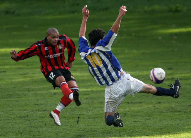 Prestwich should have scored more but were guilty of some bad misses. However, a bad mistake let in Lewis at the far post who slammed the ball into the goal.