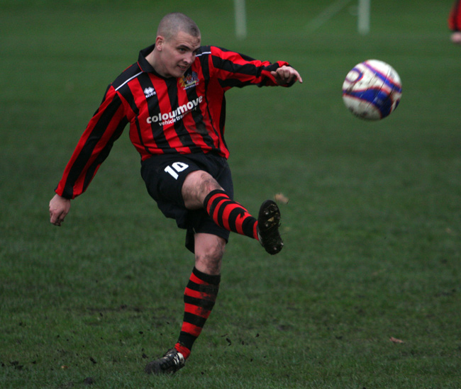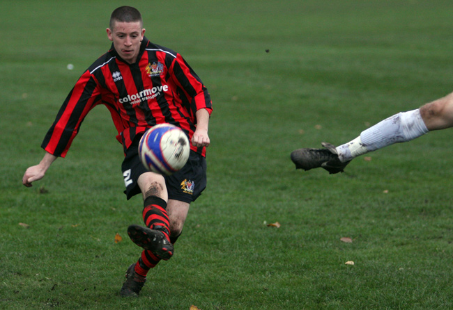 Mike Kirkley’s amazing lobbed effort from the wing brilliantly disguised as a cross set the home side on their way against Division One leaders Prairie United at Heys Road on Saturday. The visitors leveled mid way through the second half before midfielder Tom Walsh popped up to regain his side’s lead with ten minutes remaining.