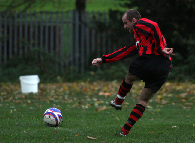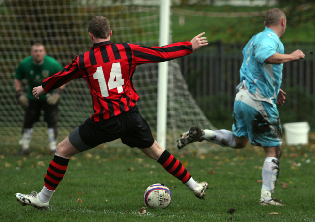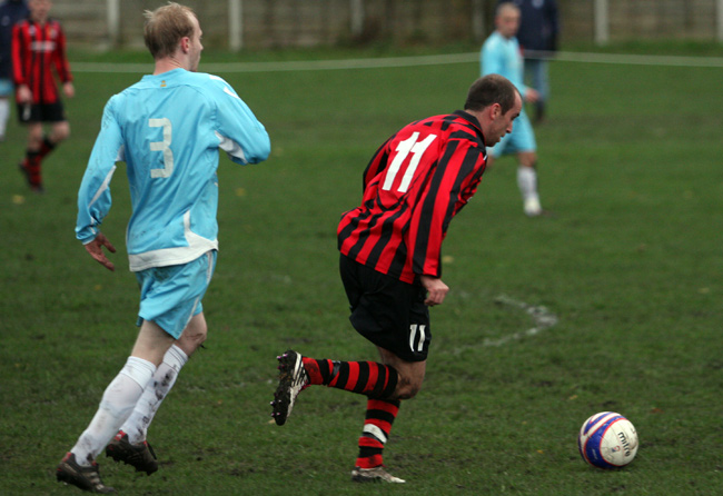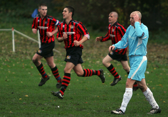 Lee Metcalfe’s team started brightly and got their noses in front via the boot of full back Mike Kirkley after his attempted cross from the left flew over the United ‘keeper and in to the net.