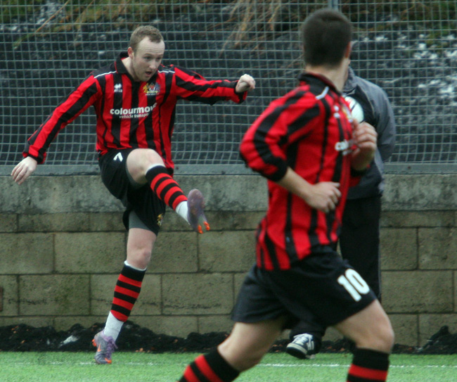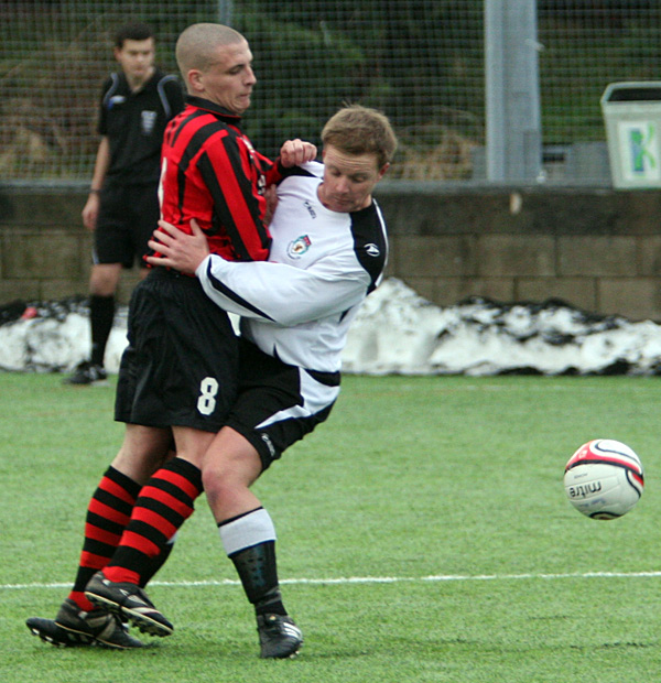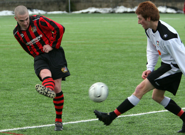 The tone for the match was set in the opening moments when a Rossendale shot from the edge of the box bounced back in to play off the base of Scott Gibbon’s upright before being cleared to safety.