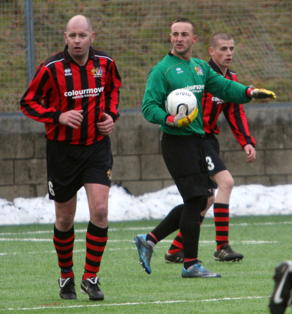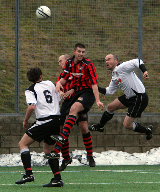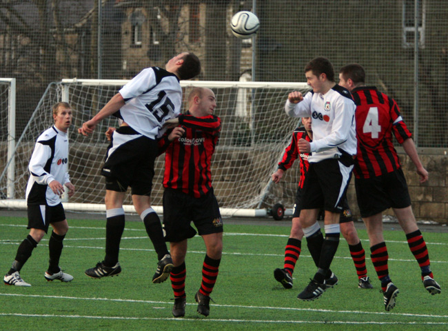 But within a minute Prestwich stunned their hosts when Martin Hill’s parried shot brought about a corner which Tom Walsh hit long to the far post as defender Paul Taylor rose high to plant a firm header in to the net. 3-2 to Prestwich at half-time.