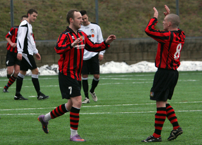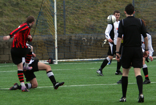 Lady luck smiled on the home side again just five minutes later when an attempted clearance from the Prestwich defence slammed in to a Rossendale forward and bounced kindly for the player to run through and score unchallenged.