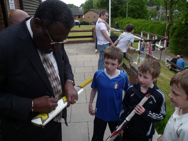 Clive Lloyd unveiled a commemorative plaque last Friday evening before he undertook a tour of the ground, off Heys Road, where around 120 juniors were taking part in their weekly cricket sessions.