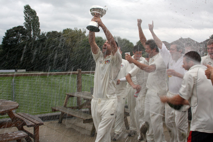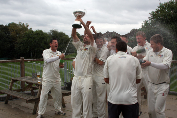 The fizz had to be kept on hold for a short time, however, while league chairman Tony Crook hurried to the Heys ground earlier than he had planned to make the formal presentation to captain Steven Lorenzini.