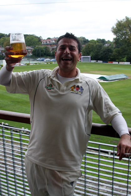 Steve Wharton struck 102 in the home side’s 191 for 8, but a jaded Prestwich lurched to 98 all out, with only Lorenzini (30) and David Taylor (24) putting up any noteworthy resistance.