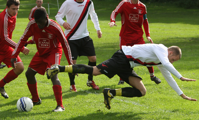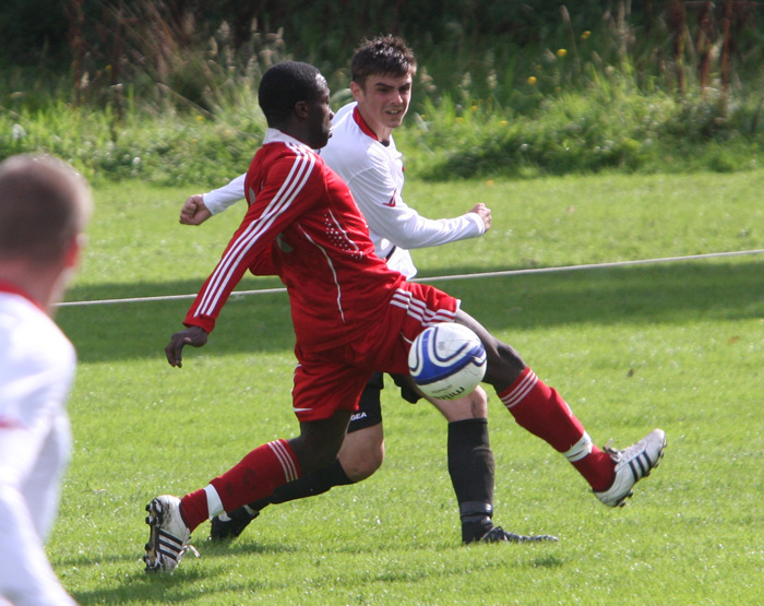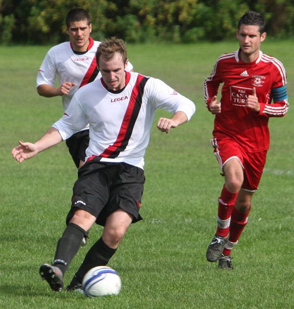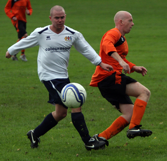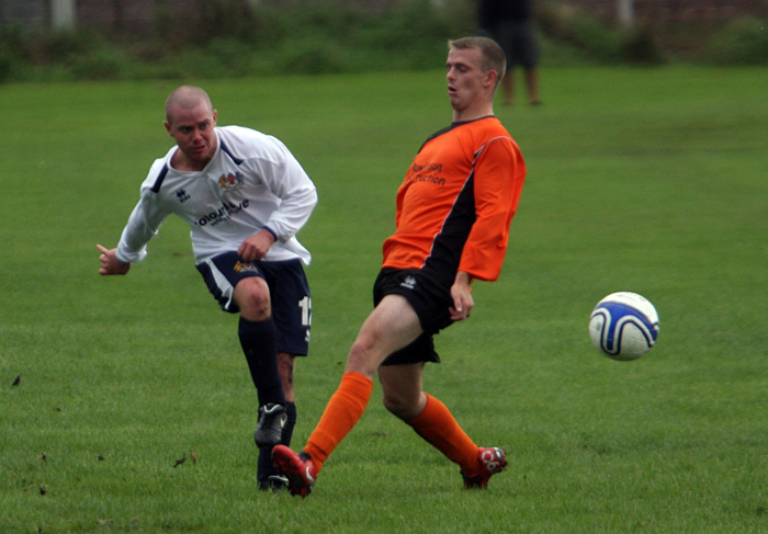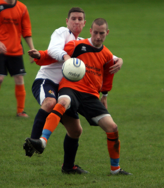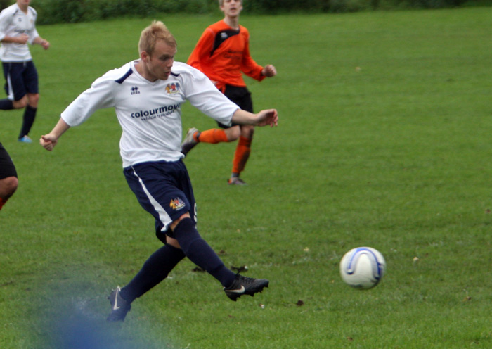 Currently sitting in third place in the North Lancashire League Premier Division, Carnforth started brightly but needed a helping hand to get their noses in front as a scuffed clearance from ‘keeper Blake was quickly turned back in to the box for a forward to hit home.