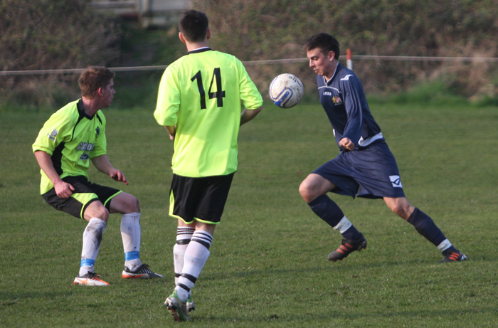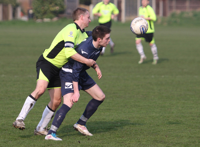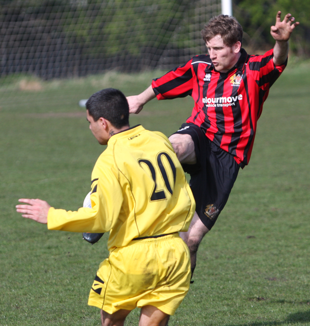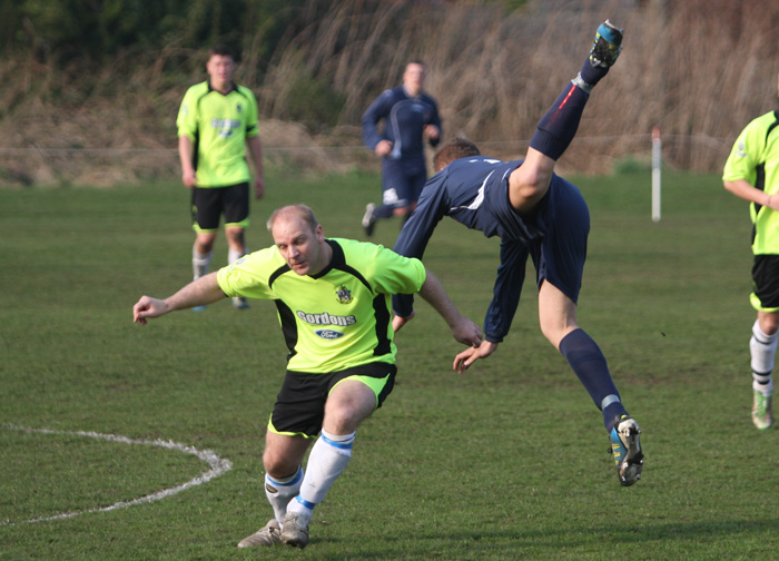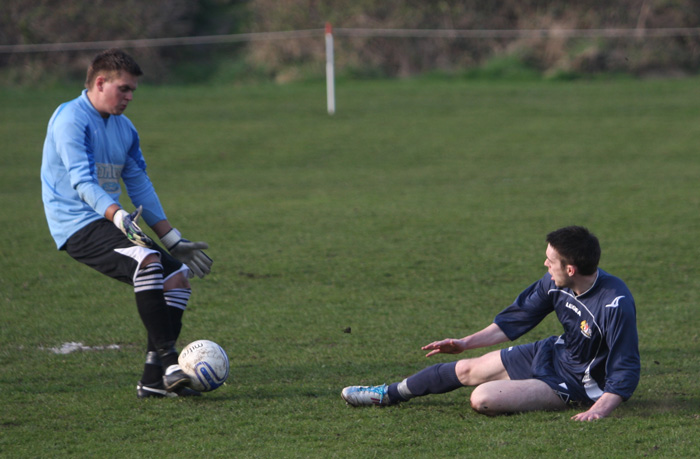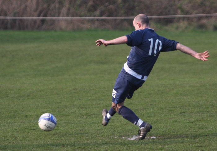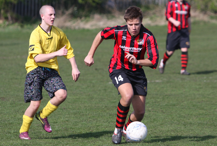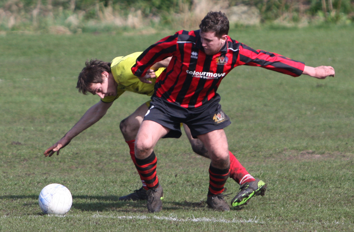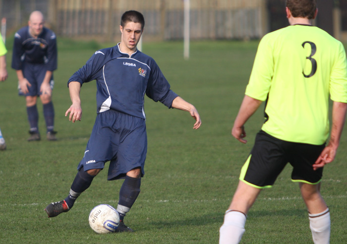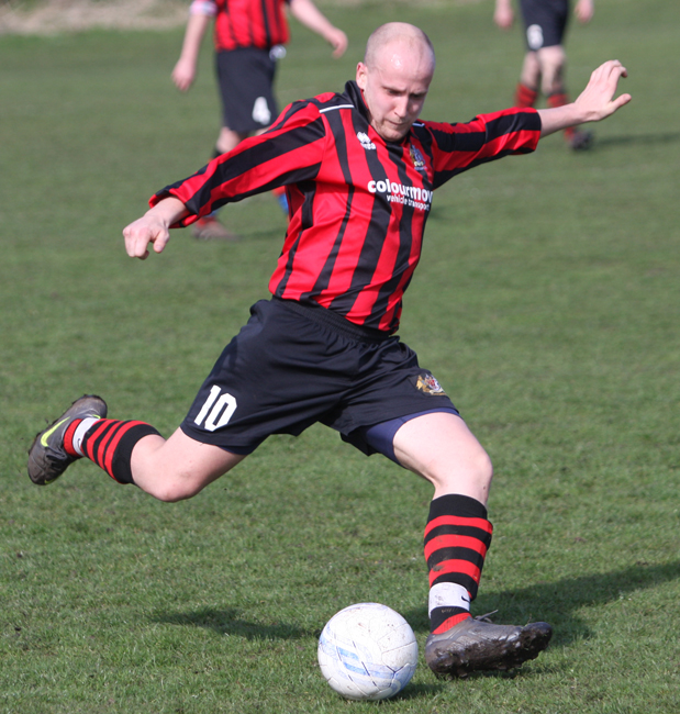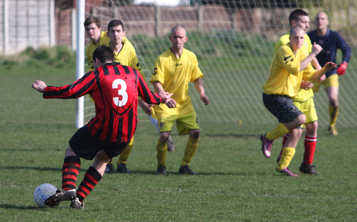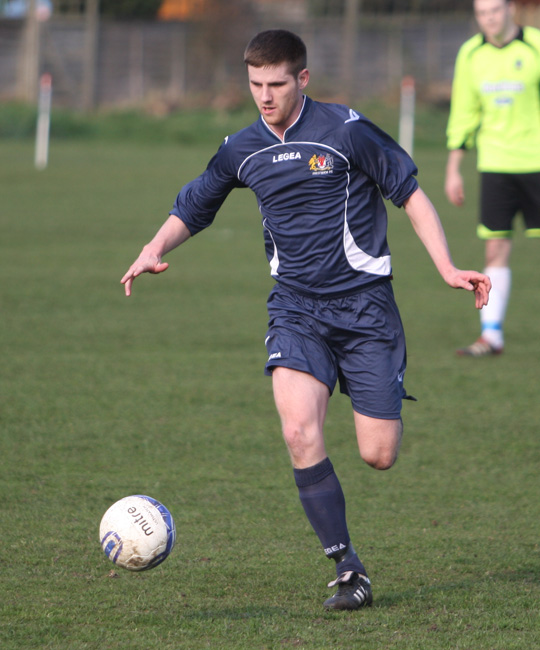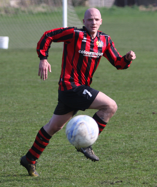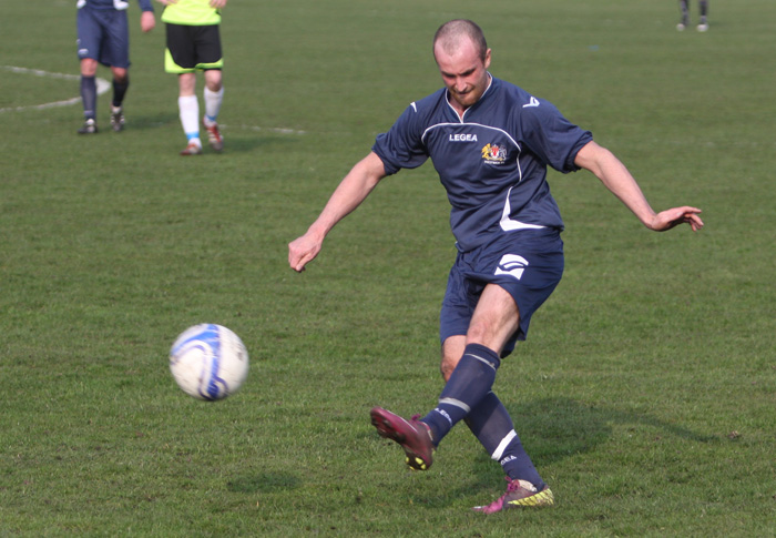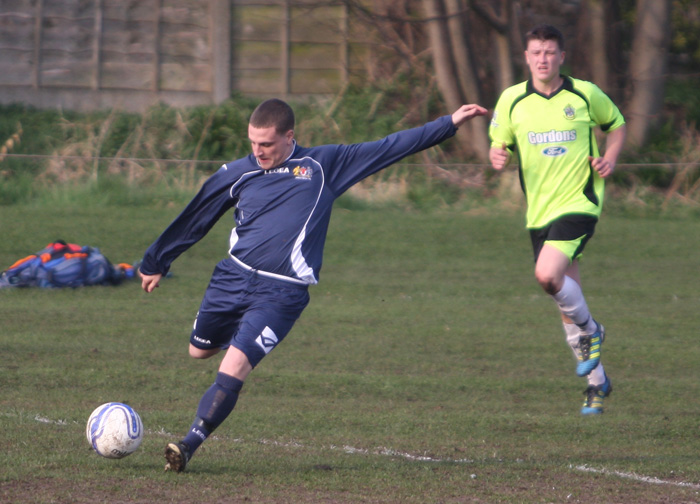 With just 15 minutes remaining, Hill then picked up the ball on the right flank and looked to send over a cross for strikers Haslam and Hoolighan in the box. But his centre skewed goalwards and flew in to the far corner over a desperately back-peddling Old Bolts ‘keeper.