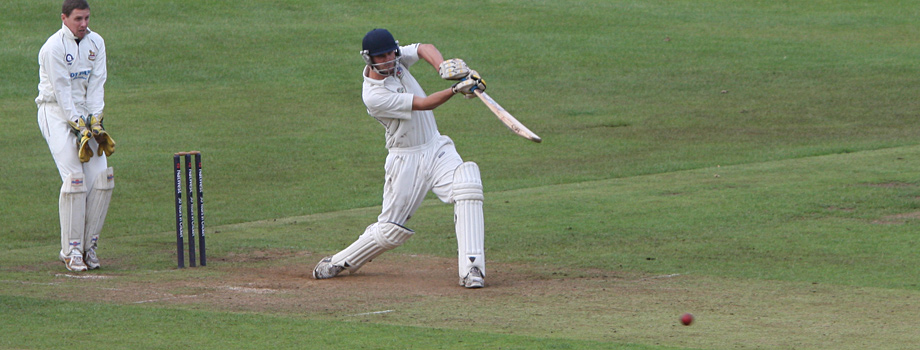 Wharmby, batting with determined concentration, reached his third half century of the season, and yet his first lapse proved his last as he strode out of his crease, and was stumped, again off the wiley Turner (4 for 31), for 58.