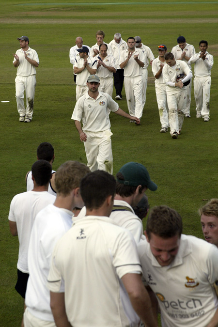 Gibson bowled a good spell, despite not gaining a wicket, and when Steve Bates and John Stopford both fell to the re-introduced Jones, the destiny of the game at 235 for 4 was still in the balance.