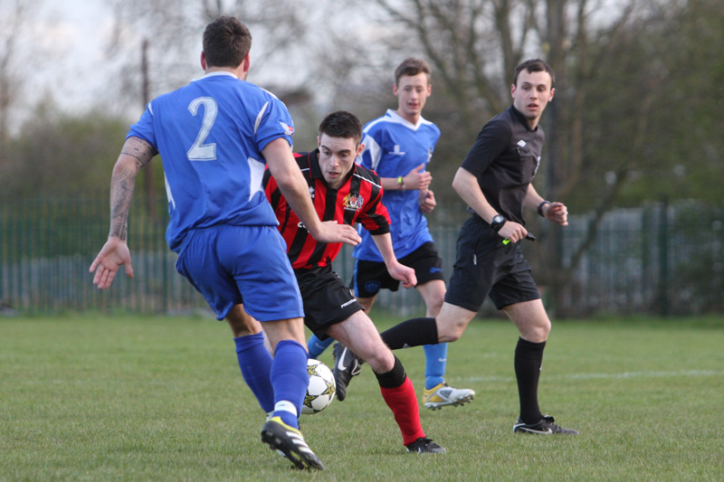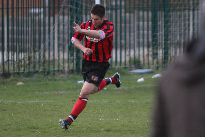 When a direct free-kick was awarded on 77 minutes, the previously untroubled ‘keeper ventured up field to unleash a powerful drive that his Hindley counterpart did well to turn over the crossbar.