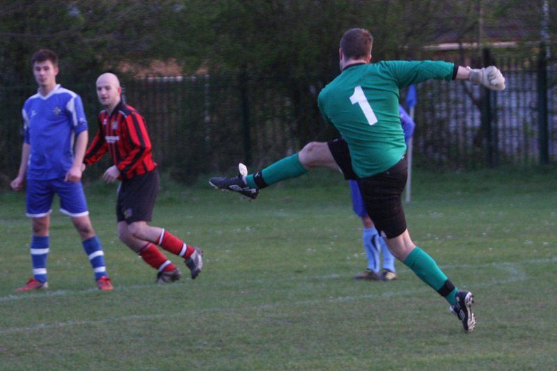 When a direct free-kick was awarded on 77 minutes, the previously untroubled ‘keeper ventured up field to unleash a powerful drive that his Hindley counterpart did well to turn over the crossbar.