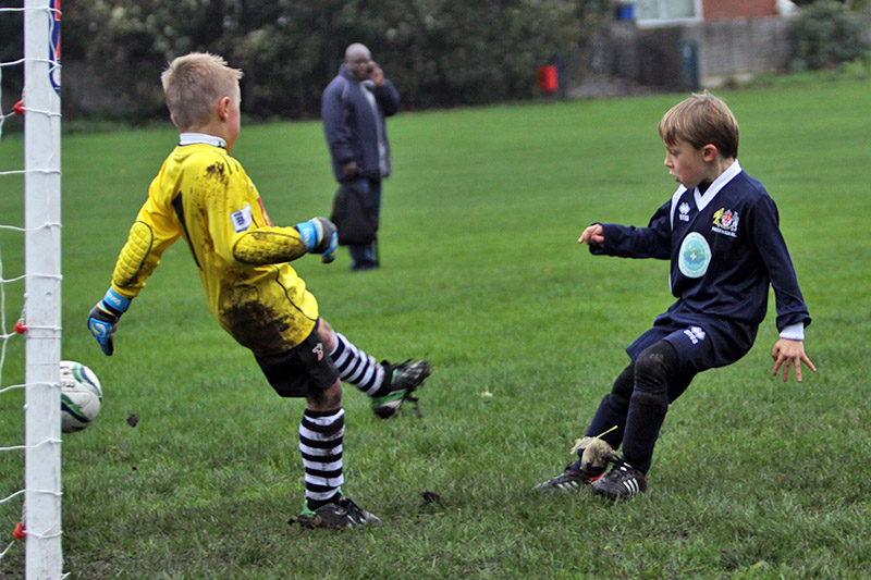 The away supporters were getting a bit excited with this looking like the Tiger’s best opportunity to break their duck and early in the second half they were further encouraged by the move of the match. Alex hugged the right touch line skipping past a couple of opponents and running most of the length of the pitch before passing to Rowan who worked the ball into the Crusader’s penalty area. The ever hungry Elliot finished off the move with a clinical sidefoot into an open goal.