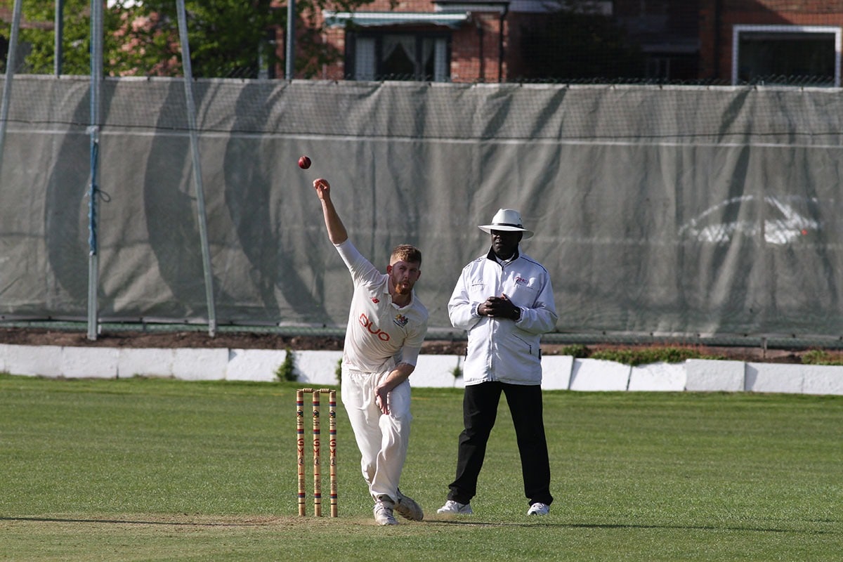 Having latterly turned to umpiring, it was uncannily apt that the first notable event in the game thrust the umpires into the spotlight – a situation Harry would have lapped up. Was Justin Kenyon’s catch completed, before he tumbled to the ground injured and the ball spilled out? The umpires deemed not, and Wharmby went on to reach a fluent 50, before Jordan Stephens made no mistake with a well-taken catch at long-on. It was Wharmby’s 42nd first team 50 (inclusive of 7 tons).