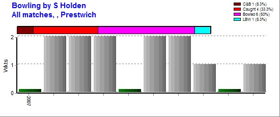 | Manchester Road | 1 | 1 | 1 | 12 | 12* | - | - | - | 10 | 1 | 58 | 2 | 29.00 | 2-58 | - | - | - | - | 1 |