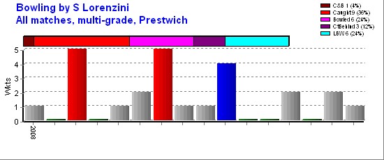 | Out Most By - I Mirza(1) P Green(1) Y Anwar(1) C Holt(1) M Usher(1) W Hargreaves(1) A Lakshitka(1) A Prescott(1) Cl Sutcliffe(1) | ||||||||||||||