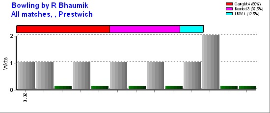 | Out Most By - S Eccles(1) M Hall(1) P Collum(1) A Berry(1) M Young(1) J Harrison(1) C Hesselwood(1) M Majid(1) | ||||||||||||||