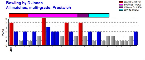 | Division One | 25 | 21 | 1 | 486 | 87 | 24.30 | - | 4 | 312.4 | 69 | 953 | 61 | 15.62 | 6-26 | - | 3 | 6 | - | 1 |