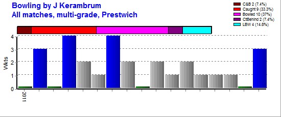 | Division Two | 18 | 7 | 5 | 27 | 9* | 13.50 | - | - | 114 | 12 | 480 | 27 | 17.78 | 4-35 | - | - | 8 | - | - |