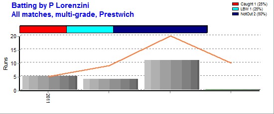 | 4 | 2 | 20 | 11 Vs LBR 2011 | 10.00 | 71.06% | - | - | 8 | 137.50 | 4 | - | 1 | - | |