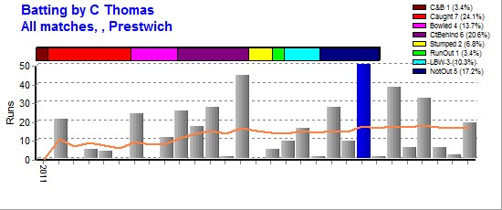 | Dukinfield 1XI | 2 | 1 | 1 | 17 | 17* | - | - | - | - | - | - | - | - | - | - | - | 1 | - | - |