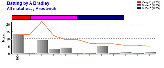| Chorley 1XI | 1 | 1 | 1 | 13 | 13* | - | - | - | 8 | 1 | 31 | 1 | 31.00 | 1-31 | - | - | - | - | - |