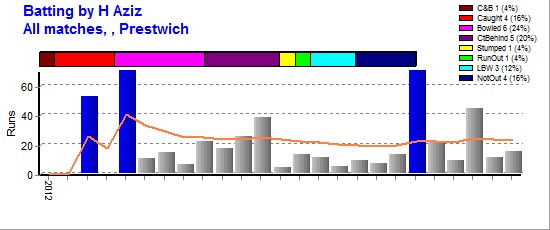 | Division Two | 26 | 22 | 3 | 421 | 70* | 22.16 | - | 3 | - | - | - | - | - | - | - | - | 12 | 6 | 6 |