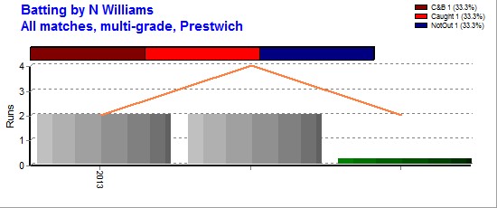 | All matches, multi-grade, Prestwich 27-Apr-2013 to 14-Sep-2013 |